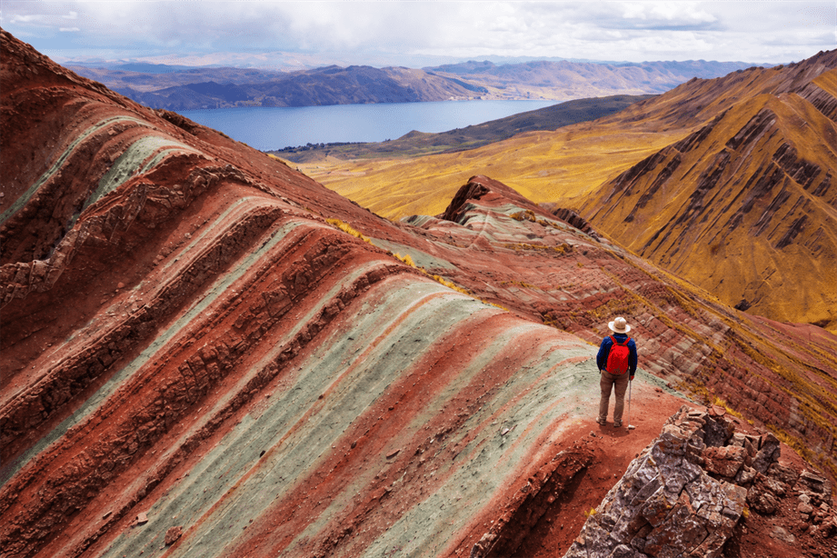 Local communities know this mountain as Pallay Punchu del Apu Tákllo, Cóndor Sayana or Apacheta. Its most impressive feature is its sharp peaks, which resemble the folds of an Andean poncho, and its astonishing variety of colors, including shades of red, brown and magenta. In addition, the imposing Lake Langui or Layo is located nearby, adding even more beauty to this natural destination.