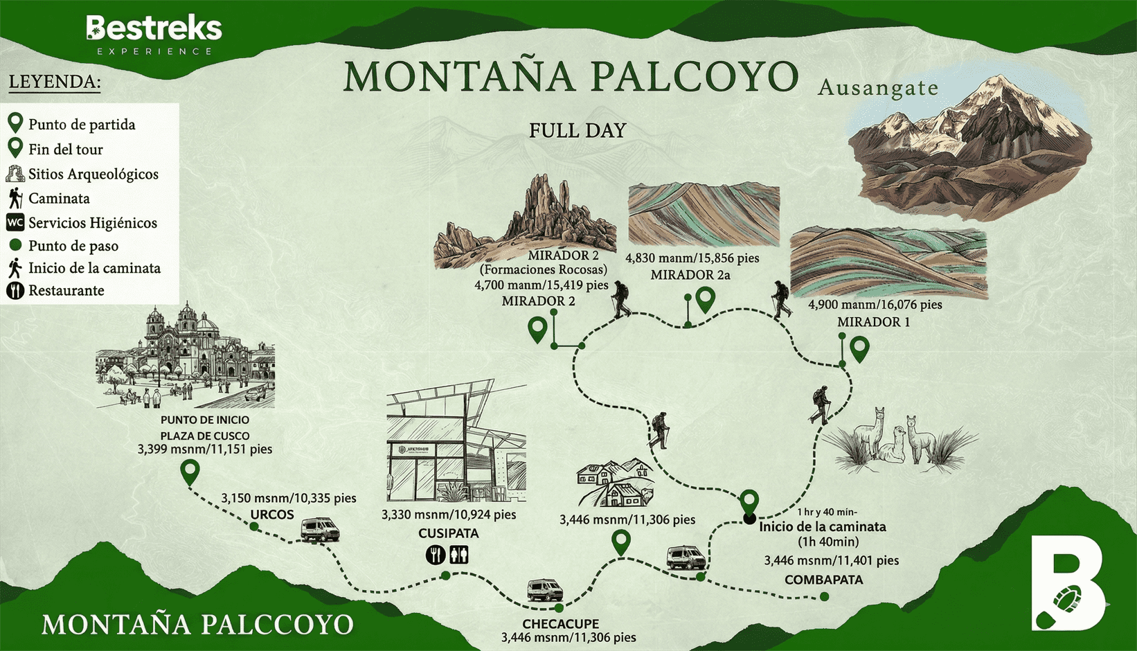 Before beginning, the guide provides safety instructions and recommendations for the hike, which lasts approximately 3 hours to the summit. Along the way, travelers can admire the beauty of the high Andean surroundings, with its characteristic ichu vegetation and fascinating wildlife, including vizcachas, alpacas, llamas, deer, foxes, and Andean condors.